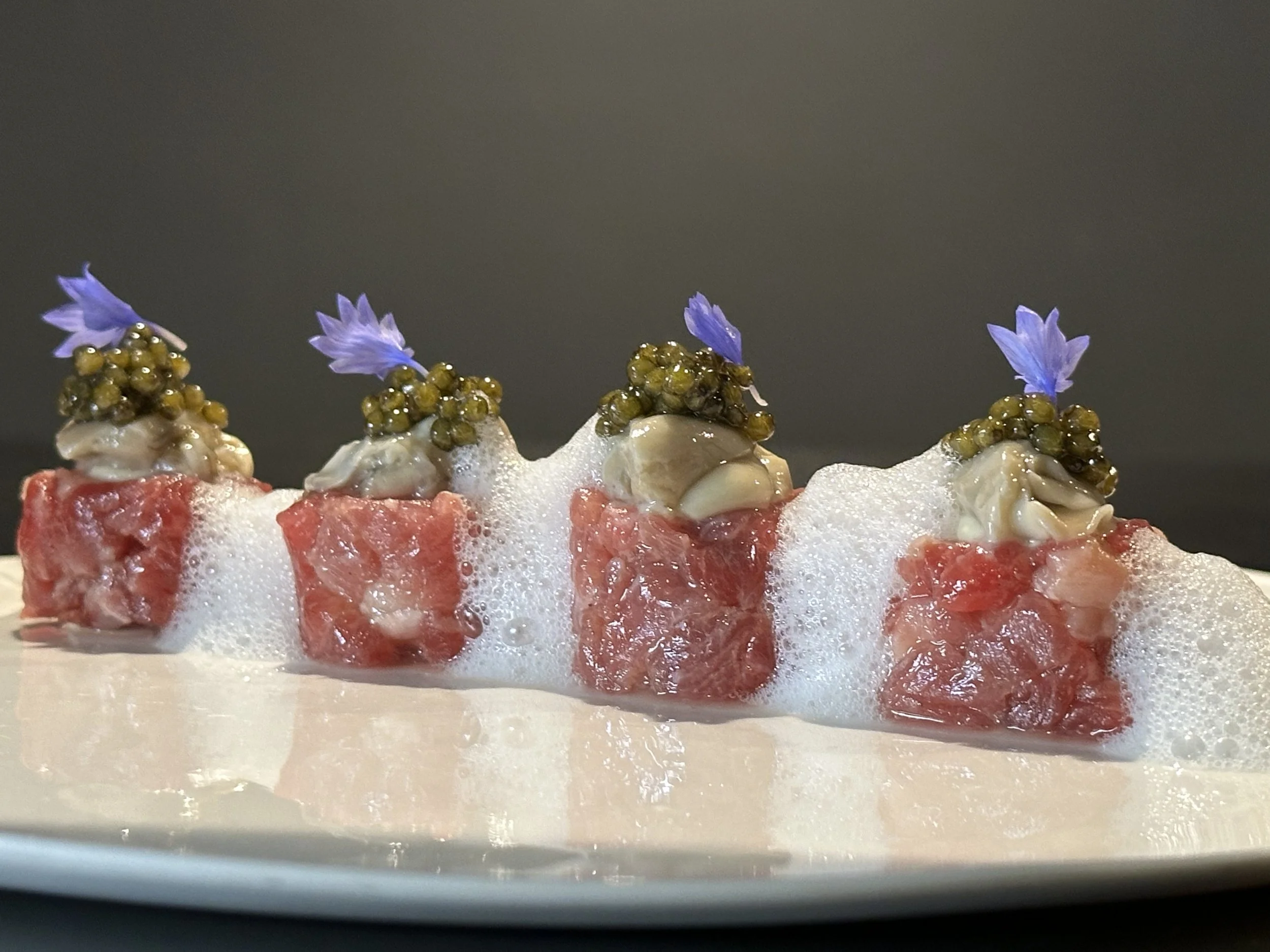 The Kitchen & Our menu Signature Menu3 gangen €654 gangen €755 gangen €856 gangen €95In ons signatuurmenu zit altijd – naar wens – onze befaamde risotto, een gerecht dat al meer dan 11 jaar met de seizoenen meegaat. À la CarteNaast ons menu kunt u ook altijd à la carte genieten van enkele klassiekers:Onze signature terrineSteak tartaar a la EspañolaVerse dagvangst uit de zeeGroot stuk dry aged vlees, bereid op het Josper houtvuur Menukaart Nederlands Menu English Reserveer